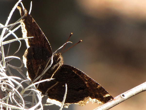 I’m embarrassed to admit it, but I have no idea when and how I learned about these butterflies! I just know that when I saw them today, my brain dredged up the name “mourning cloak”. I even googled them this afternoon, thinking I might find a website that looked familiar. I found lots of nice references, like this one, but nothing I could call my original source.