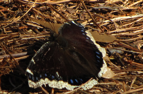 Near the end of my walk, I stumbled into a herd of mourning cloak butterflies.