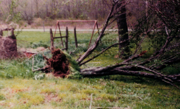 Here in the mid-Atlantic, tornadoes rarely threaten. However, along the Tennessee/Alabama state line, where I grew up, spring routinely brings tornado outbreaks. These photos are from Easter morning 1984. That window, the one nearly hidden by leaves, was my bedroom.