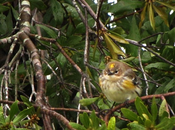 Fourth, there are yellow-rumped warblers. Flitting and chirping in nearby branches, the warblers add credibility to the squirrel’s alarm. (Because birds are more credible than squirrels…)