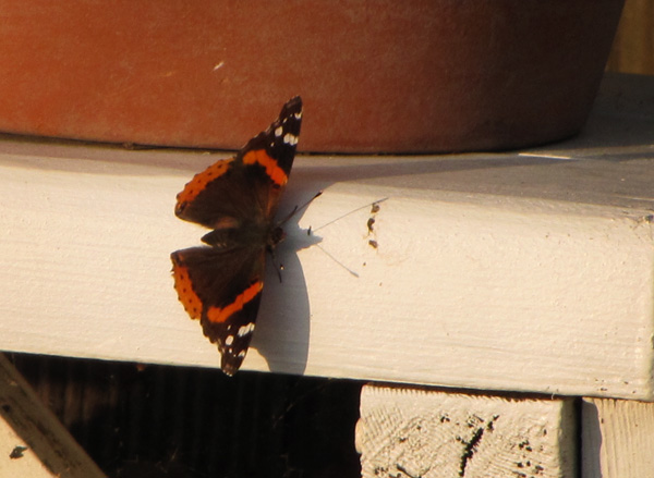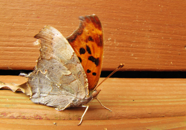 One lone straggler, either a comma or question mark butterfly, crashed on the deck as I was going inside.