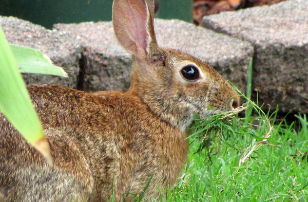 This morning, one of the rabbits built a new nest in the irises. It looked like a lot of work. She pulled grass in huge mouthfuls, carried it into the iris bed, arranged it carefully, then returned for more grass. She also spent a great deal of time digging, uprooting several irises in the process. (The irises will survive. They always do.)