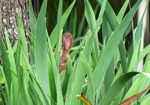 In the past, we’ve had rabbits dig nests and then abandon them before delivering their babies. So I’m trying to stay away from the irises for a while, hoping that the mother rabbit won’t change her mind…