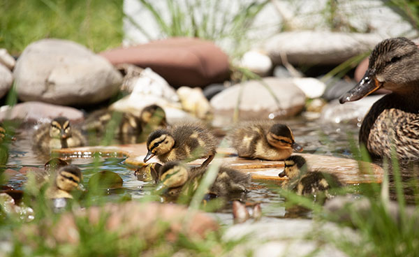 I was shocked when the mallard led her brood back, that evening. My husband saw them coming up the sidewalk and called for me. The female mallard had guided her dozen day-old ducklings out into the canal and back again, safe and tired. We opened the gate and welcomed them home, pond wreckage forever forgiven as the sleepy family spilled back into their nest.