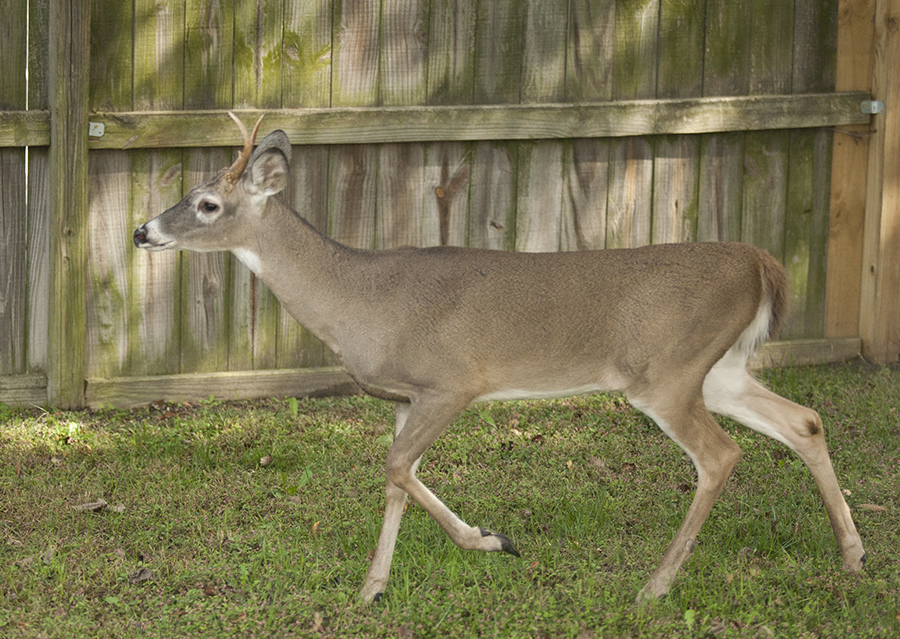 I don’t know why the deer decided to stay. Maybe he was exhausted. Maybe he didn’t like how it felt, going over a fence without knowing what was on the other side. Maybe he was relieved to find a yard with no dogs, a pair of small water gardens, some weedy pollinator beds, and a few spots of semi-cover.